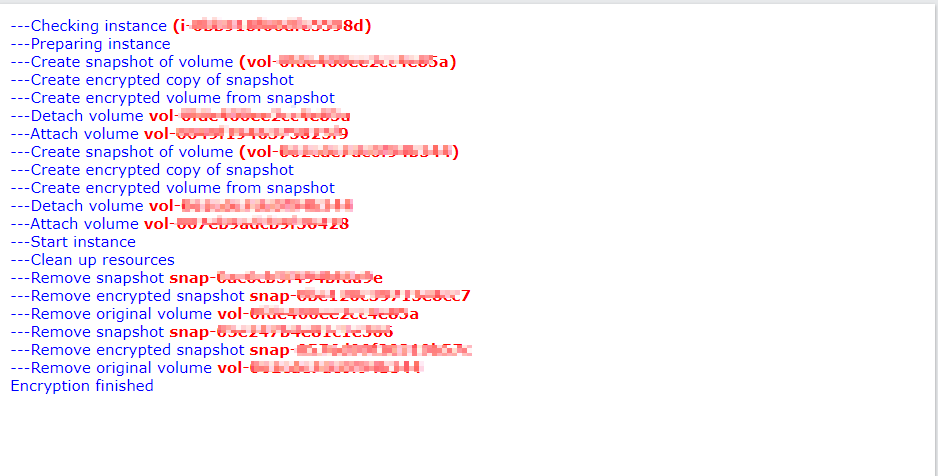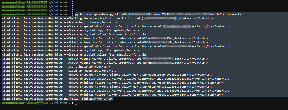 4. Execute `python -i <Intsance_ID> -key <KMS_KeyID> -r <AWS_Regon>`